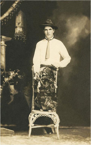 PZ-05 Man Behind Dog on Chair - Vintage Image