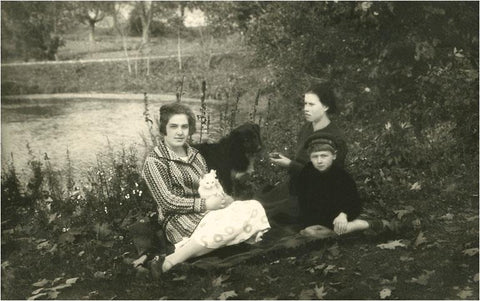 PZ-19 At the Lake with Dog and Kitten - Vintage Image