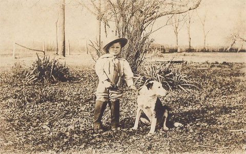 PZ-51 Little Boy in Boots with Dog - Vintage Image