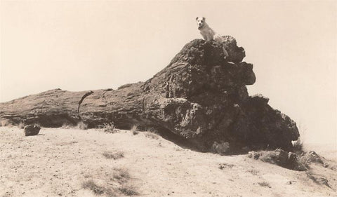 PZ-69 Dog on Fallen Tree - Vintage Image
