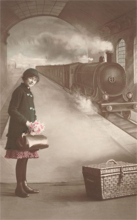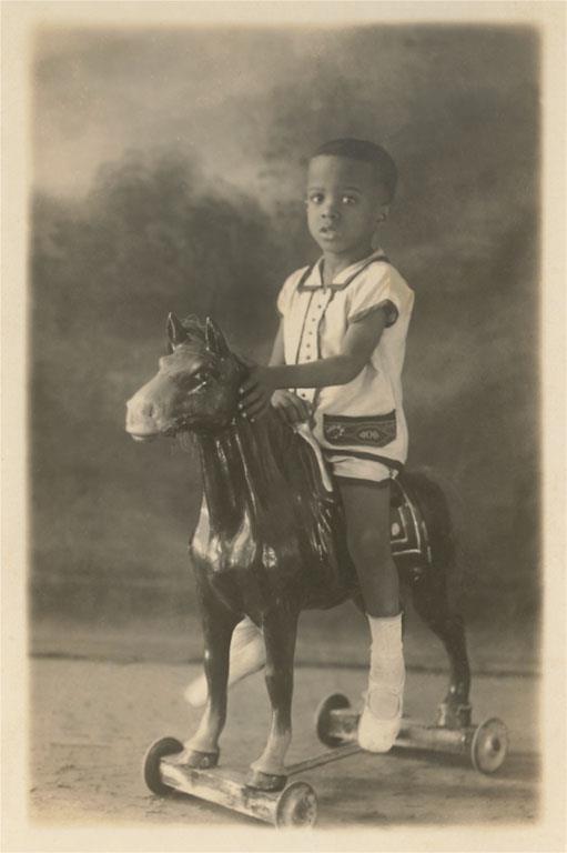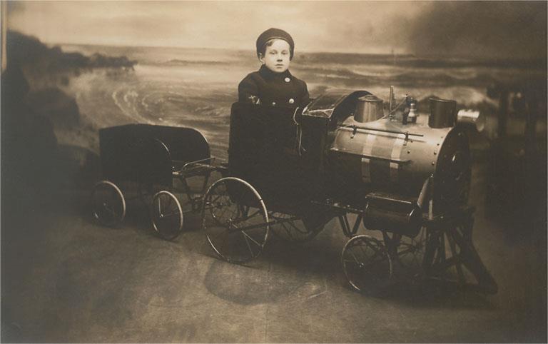 PH-233 Boy on Toy Train - Vintage Image