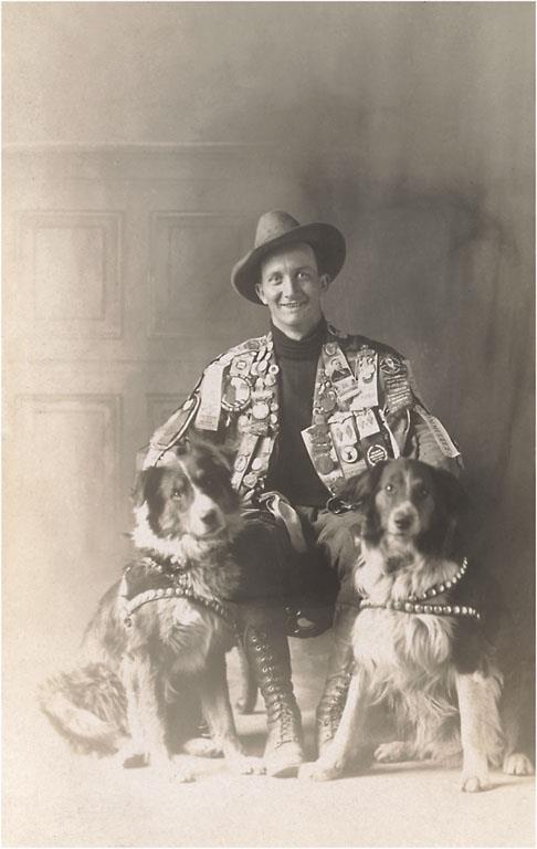 PH-198 Badge Man with Dogs - Vintage Image