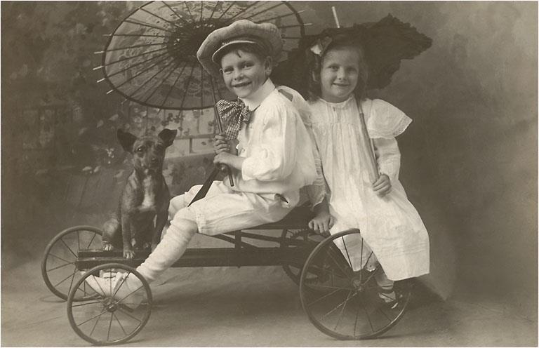 PH-210 Children on Toy Car - Vintage Image