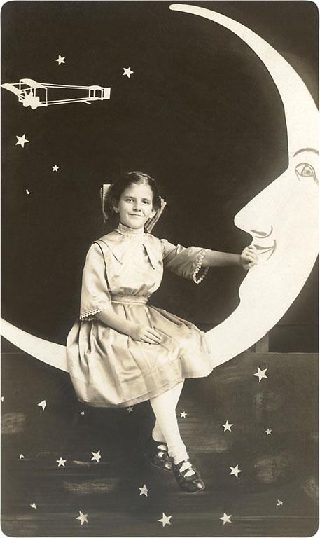 PH-73 Girl Sitting on Moon - Vintage Image