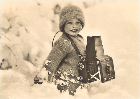 PH-02 Child in Snow with Old Camera - Vintage Image