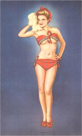 GY-11 Woman in Bandanna Bathing Suit with Dog - Vintage Image