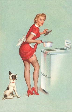 GY-128 Woman Cooking in Short Skirt - Vintage Image