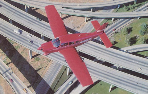 CA-1551 Red Airplane Over Freeways - Vintage Image