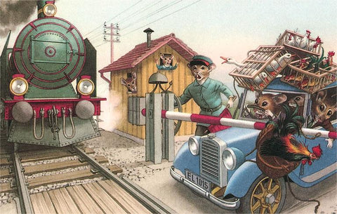 RR-184 Mice at the Railroad Crossign - Vintage Image