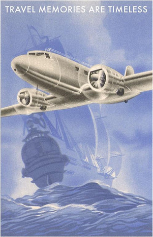 TR-40 Travel Memories are Timeless, Airplane and Galleon - Vintage Image
