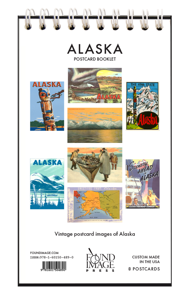 This postcard booklet features 8 beautiful vintage postcard images of Alaska from 1940 to 1960. Majestic mountains, umiaks, totem poles, and vast expanses of water grace the 8 perforated tear-out pages of this sweet little book. Spiral bound, it is printed on acid-free, natural white, heavy card stock, and measures 3.5x 6.25. Give as a gift, enjoy as a memento, or tear out postcards to mail to your friends -- all you need is a postcard stamp! Made in the USA.