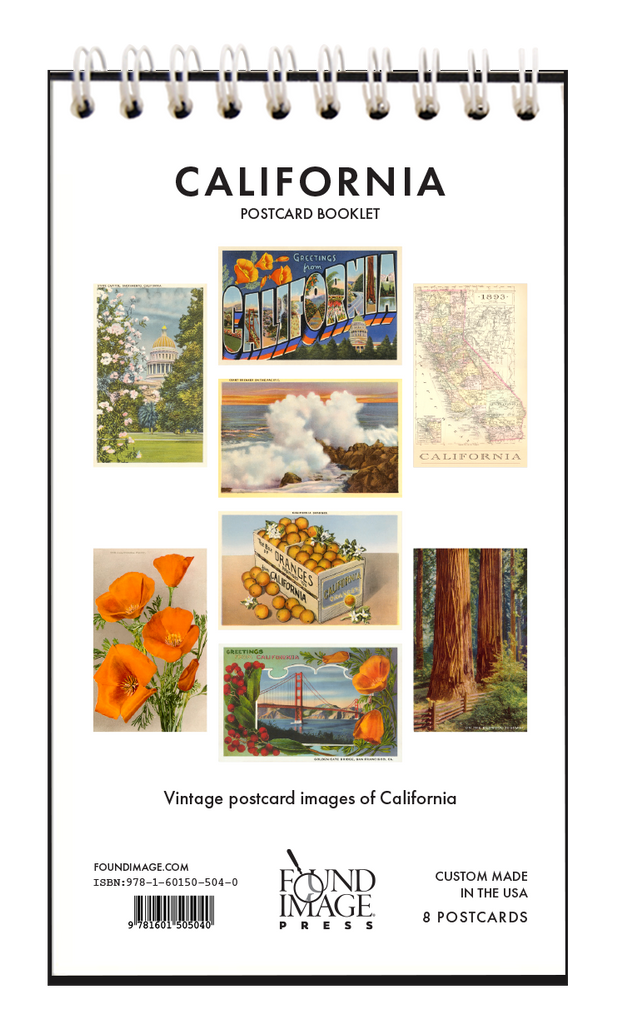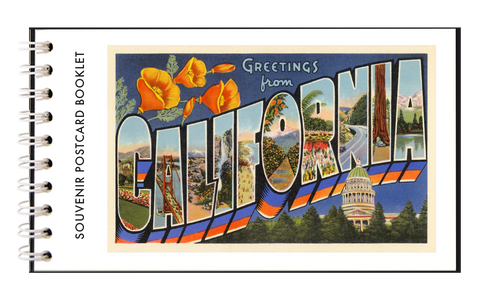 Greetings from California! This postcard booklet features 8 beautiful vintage postcard images of California from 1910 to 1940. California poppies, crates of oranges, redwood trees, crashing waves, and the Golden Gate Bridge grace the 8 perforated tear-out pages of this sweet little book. Spiral bound, it is printed on acid-free, natural white, heavy card stock, and measures 3.5x 6.25. Give as a gift, enjoy as a memento, or tear out postcards to mail to your friends -- all you need is a postcard stamp! Made in the USA.