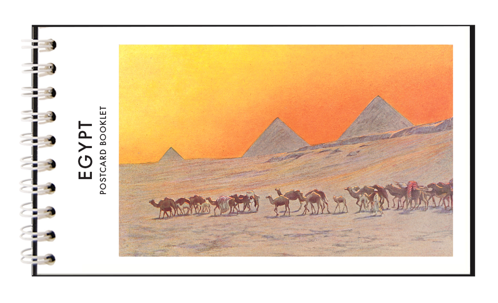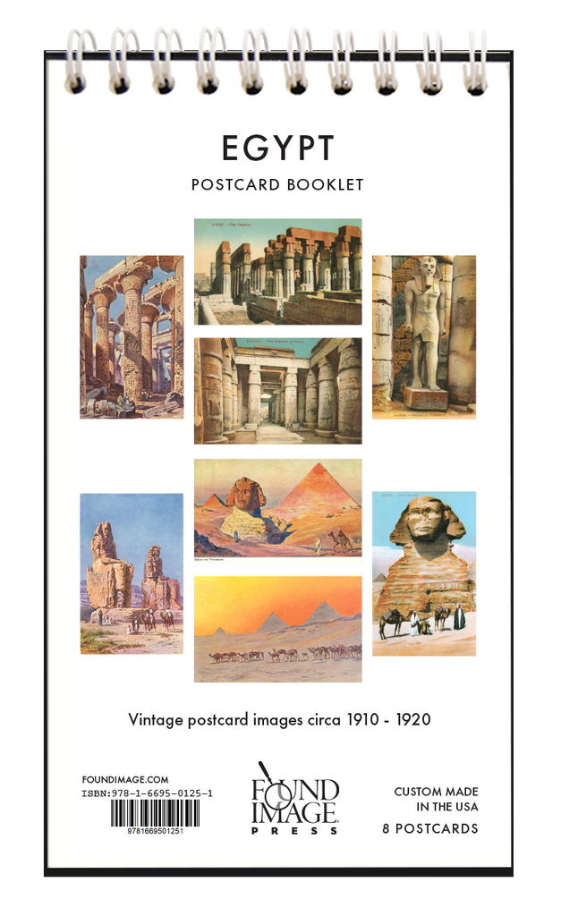 This postcard booklet features 8 vintage images of Egypt from 1910 to 1920. Vintage views of the pyramids and Sphinx of Giza, the Temples of Karnak and Luxor, and the Colossi of Memnon grace the 8 perforated tear-out pages of this sweet little book. Spiral bound, it is printed on acid-free, natural white, heavy card stock, and measures 3.5” x 6.25”. Give as a gift, enjoy as a memento, or tear out postcards to mail to your friends — all you need is a postcard stamp! Made in the USA.