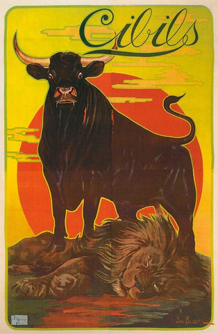 PO-84 Poster for Cibils Meat Extract, Bull, Lion - Vintage Image