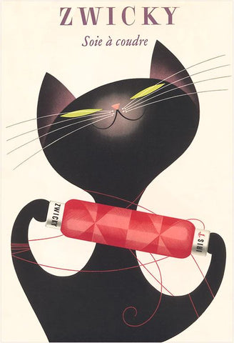 PO-313 Cat with Silk Thread - Vintage Image