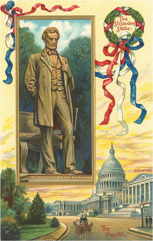 PR-38 Abraham Lincoln, Statue and Capitol - Vintage Image