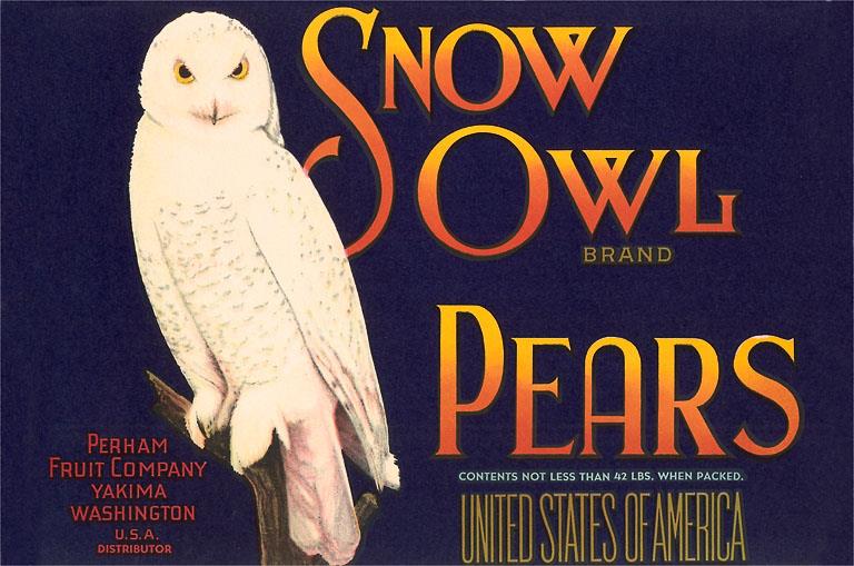 FR-218 Snow Owl Pear Label - Vintage Image