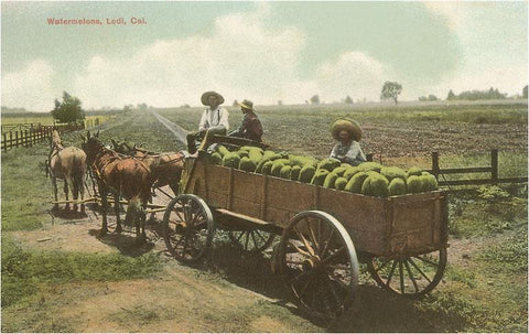 FR-131 Watermelon in Cart, Lodi, California - Vintage Image