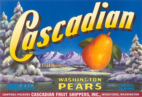 FR-195 Cascadian Pear Label - Vintage Image