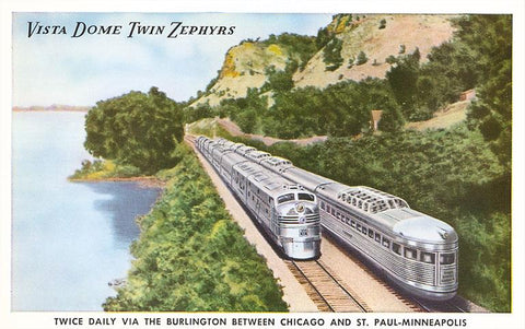 RR-09 Two Trains with Vista Domes - Vintage Image