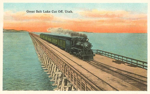RR-10 Locomotive Crossing Great Salt Lake - Vintage Image