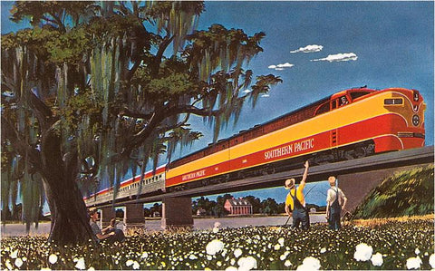 RR-39 Cotton Farmers Waving to Streamlined Train - Vintage Image