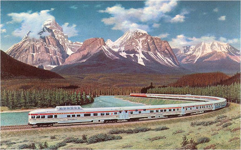 RR-43 Train Passing through Rocky Mountains - Vintage Image