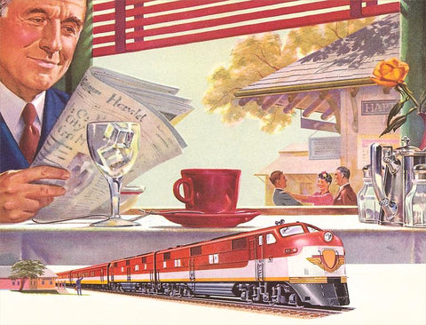 RR-164 Reading Newspaper on Train - Vintage Image