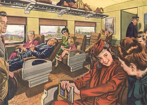 RR-200 Passengers in Train Car - Vintage Image