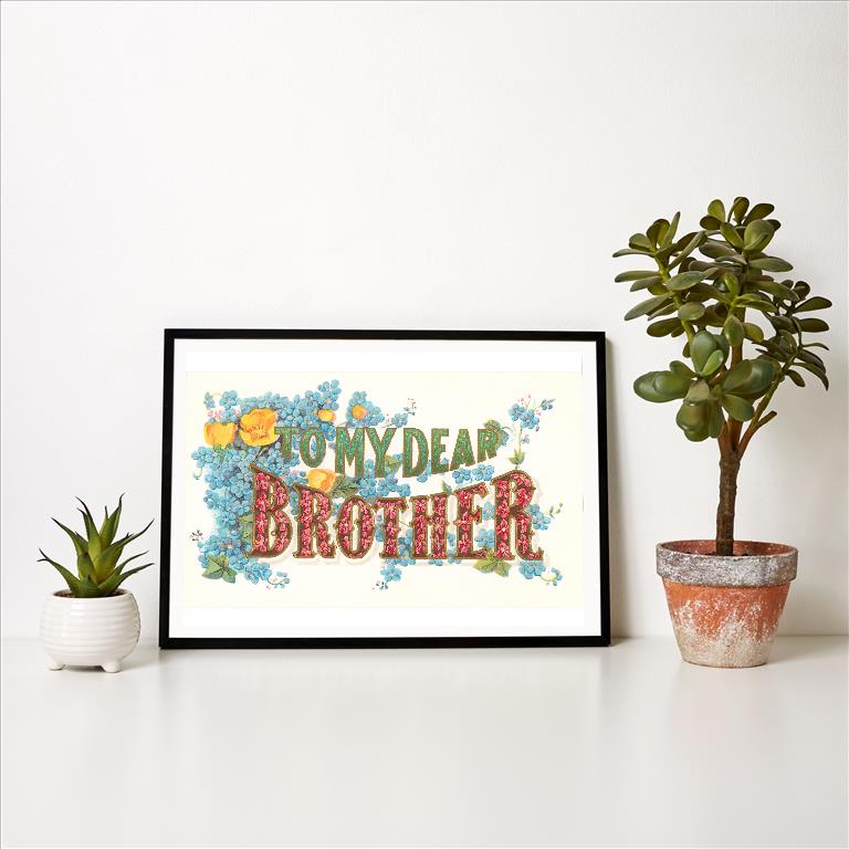 LL-05 To My Dear Brother, Floral Lettering - Vintage Image