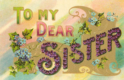 LL-16 To My Dear Sister, Floral Lettering - Vintage Image
