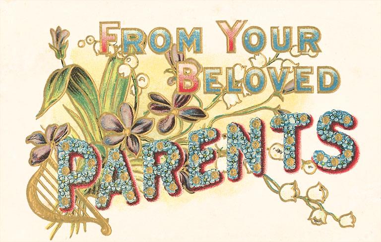 LL-30 From Your Beloved Parents, Floral Lettering - Vintage Image