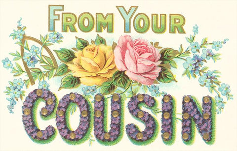 LL-44 From Your Cousin, Floral Lettering - Vintage Image