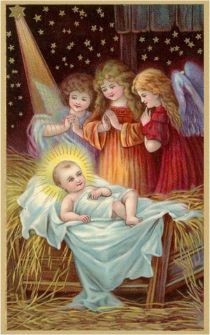 RG-33 Young Girl Angels Admiring Christ Child - Vintage Image