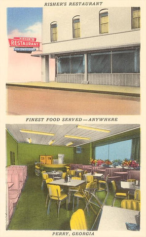 RD-35 Risher's Restaurant, Interior and Exterior, Georgia, Retro - Vintage Image