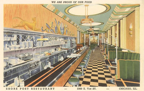 RE-37 Interior, Shore Post Restaurant, Retro Diner - Vintage Image