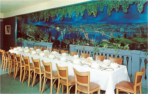 RE-43 Interior, Dining Table, Restaurant with Mural - Vintage Image