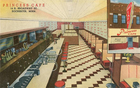 RE-101 Princess Cafe Interior, Rochester, Minnesota - Vintage Image