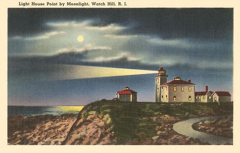RI-203 Moon over Lighthouse, Watch Hill - Vintage Image