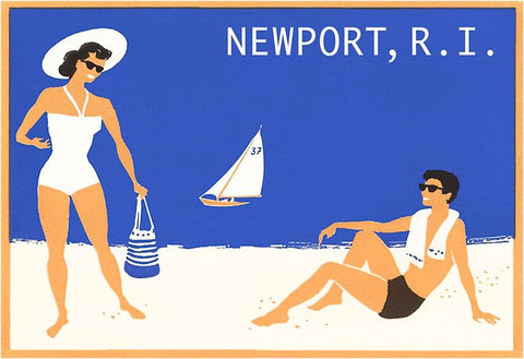 RI-317 Newport, Couple on Beach - Vintage Image