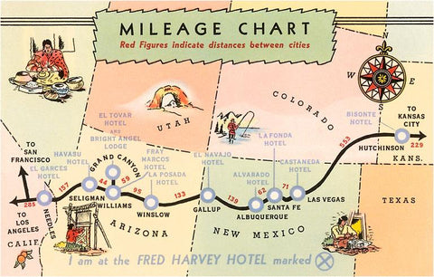 RS-25 Mileage Chart Showing Distances Between Harvey Hotels - Vintage Image