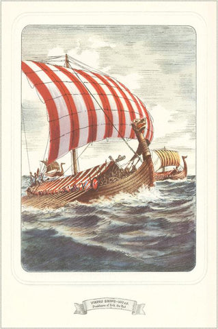 SL-30 Viking Ship with Striped Sail - Vintage Image