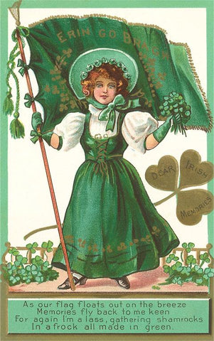 SP-05 St. Patricks Day Poem, Girl with Flag - Vintage Image