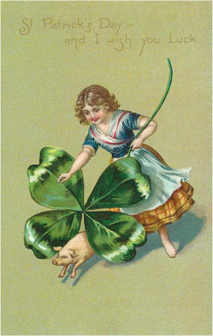 SP-14 St. Patricks Day, Girl Chasing Pig - Vintage Image