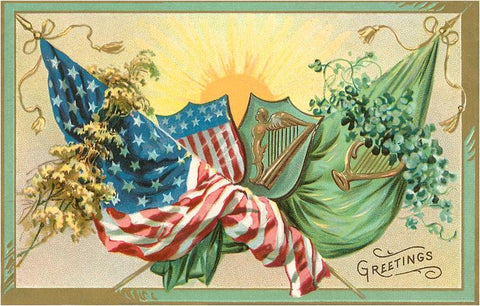SP-25 St. Patricks Day, US and Irish Flags - Vintage Image