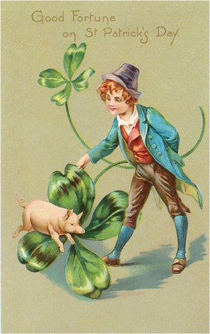 SP-27 St. Patricks Day, Pig, Leprechaun and Shamrock - Vintage Image