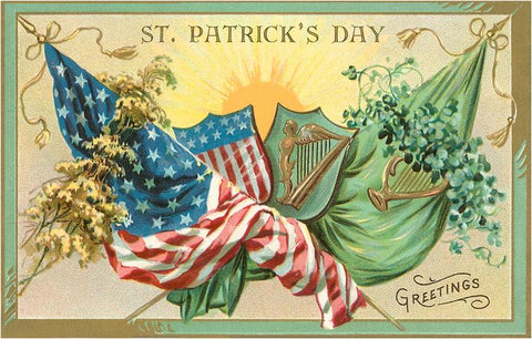 SP-75 St. Patrick's Day, American and Irish Flags - Vintage Image
