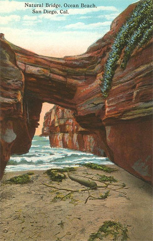 SD-123 Natural Bridge, Ocean Beach, San Diego, California - Vintage Image