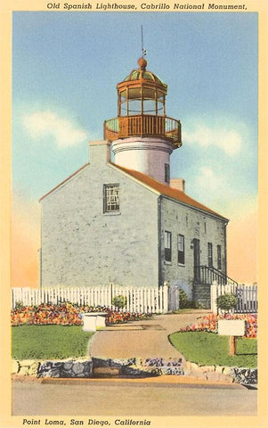 SD-388 Cabrillo Lighthouse, Point Loma, San Diego, California - Vintage Image