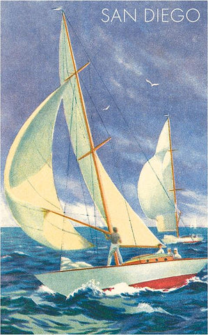 SD-648 Foredeck Man in Sailing Race, San Diego, California - Vintage Image